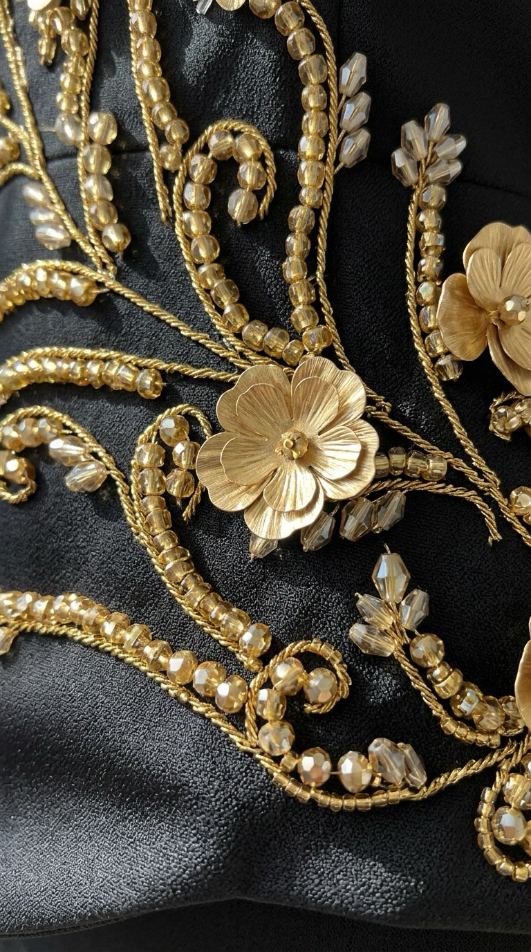 Siyah Straplez Büstiyer Görünümlü Beden Taş İşlemeli Kadın Abiye (26SER9479)