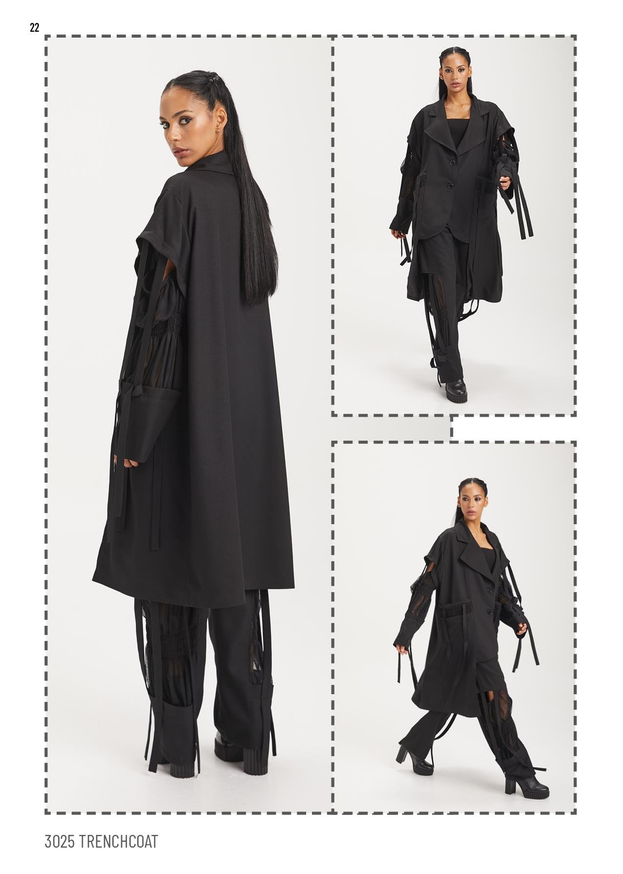 Siyah Torba Cepli Omuz Dekolteli Asimetrik Etekli Kadın Trençkot